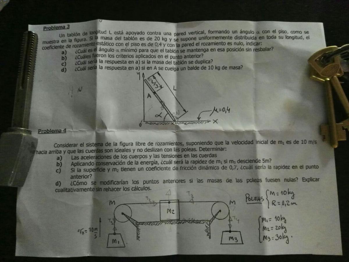 Luego, planteas la Segunda Ley de Newton (haz un gráfico para visualizar mejor la situación), y queda el sistema de ecuaciones: