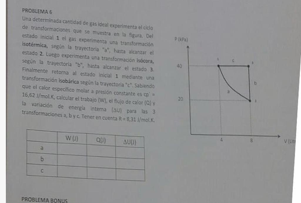 Hola, buenas tardes. Necesito ayuda urgente con esto ejercicio de termodinámica, ya que no puedo resolverlo porque tengo dudas sobre como calcular la temperatura y la cantidad de moles. Por favooooor. Gracias!!💜