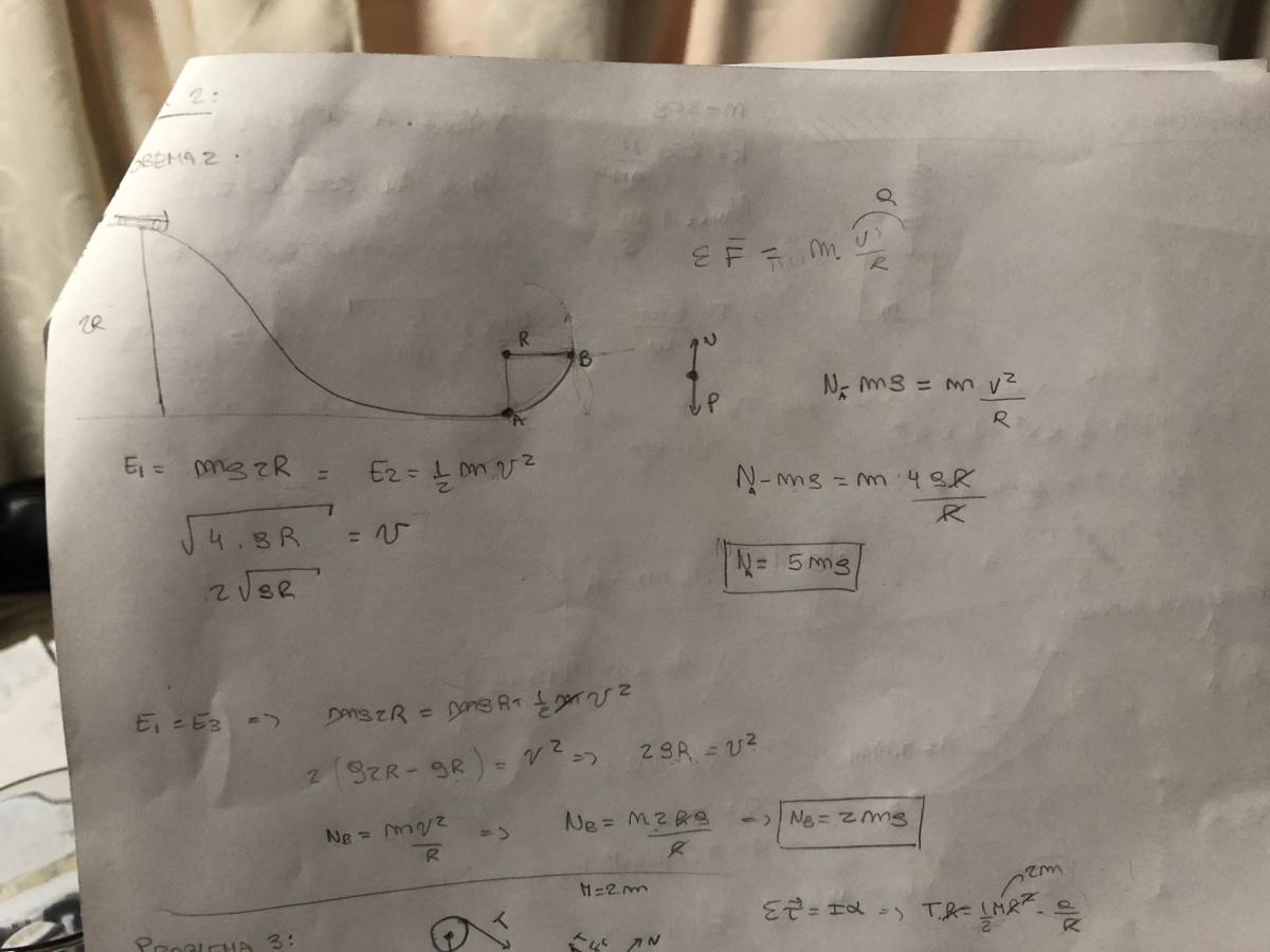 Luego, planteas conservación de la energía mecánica entre las situaciones (2) (1), y tienes la ecuación