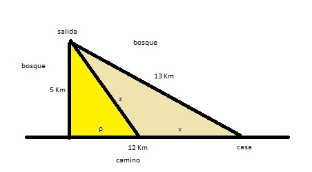hipotenusa: 13 Km (distancia del punto de salida a la casa),