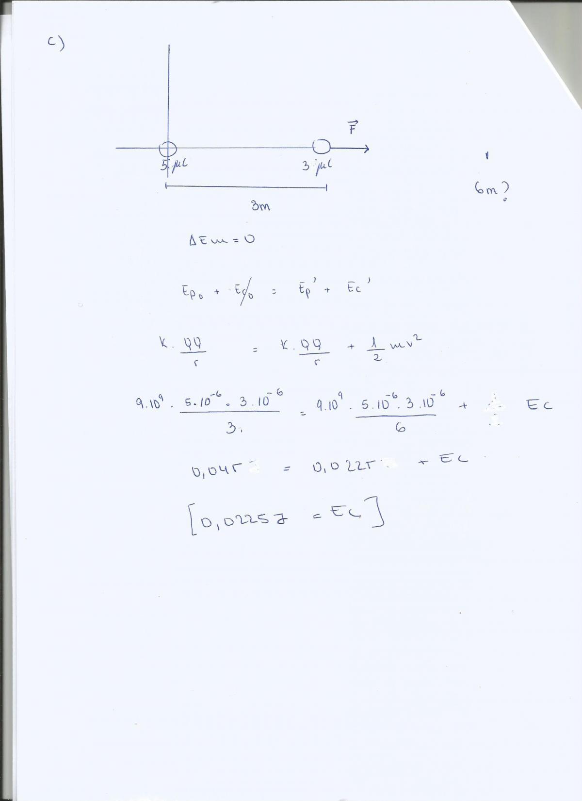 C) Si dejamos ir esta segunda carga desde el reposo cuando esta a 3 m, cual sera su energía cinética cuando esté a 6m del origen?