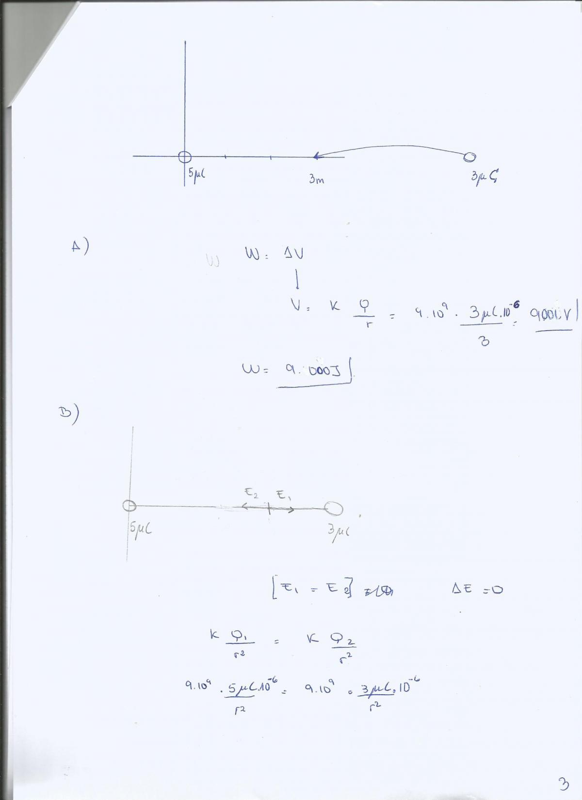 A) Que trabajo se tiene que realizar para llevar una segunda carga de 3 μC desde muy lejos hasta un punto situado a 3 m del origen?