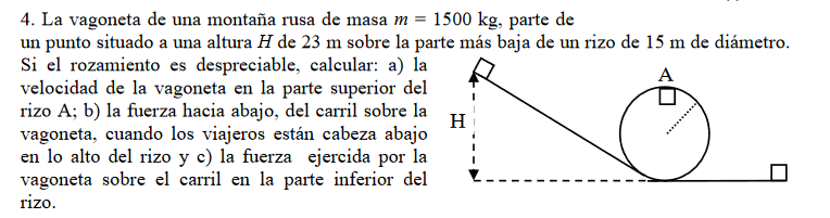 Luego, tienes para el instante en el que la vagoneta está en el punto más alto del rizo: