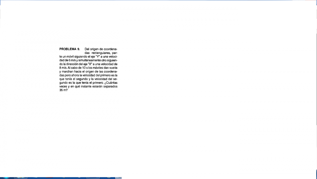 Planteas las ecuaciones de posición de Movimiento Rectilíneo Uniforme para la primera etapa (observa que las velocidades de los móviles tienen sentidos positivos, y observa también que el instante inicial para esta etapa es: ti = 0, y que el instante final es: tf = 10), y queda: