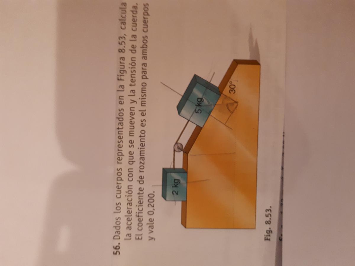 5*10*sen(30°) - 0,200*5*10*cos(30°) - 5*a = T, de donde tienes: