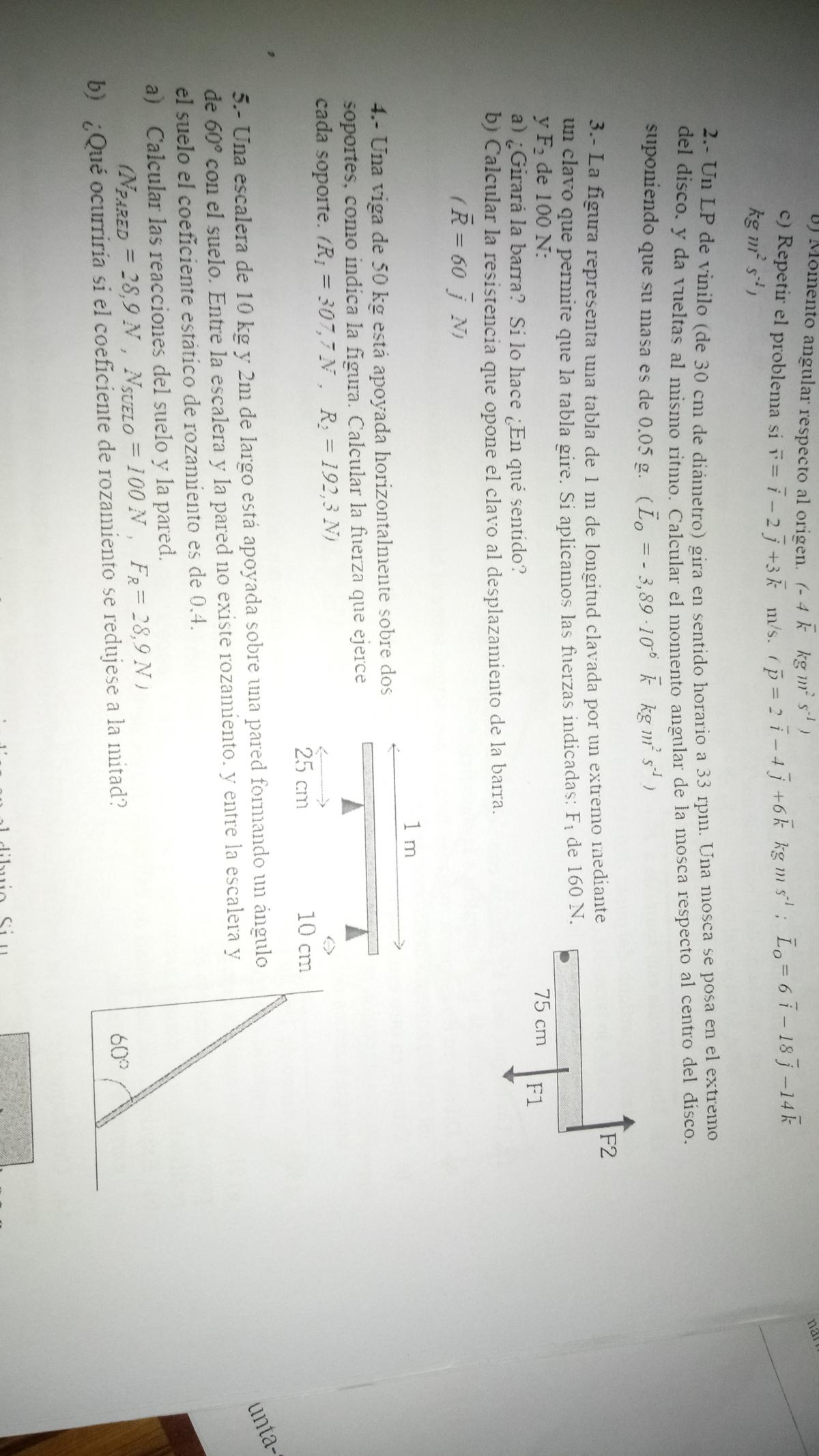 Luego, tienes los datos del primer instante en estudio: