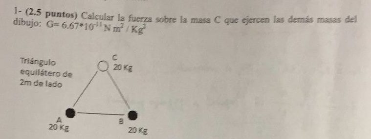 Tres partículas de igual masa (=1kg) se encuentran inicialmente en los puntos: A(0,2), B(0,0) y C(0,-1). Inician su movimiento con