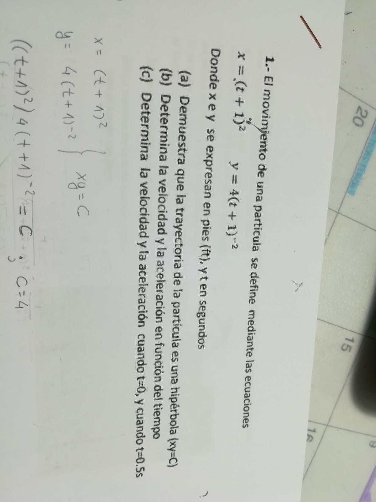 Has resuelto correctamente este inciso, la ecuación cartesiana de la curva que contiene a la trayectoria del móvil es: