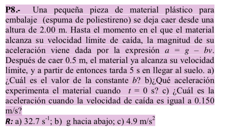 Buenas, tengo el parcial de cinemática, dinámica y vectores el viernes y estoy desesperada con este ejercicio de fuerzas de arrastre. ¿Alguien me ayuda?