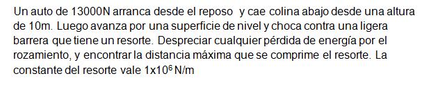 Como no hay perdidas de energía en el recorrido, el auto chocará contra el resorte con una energía cinética Ec igual a 130kJ