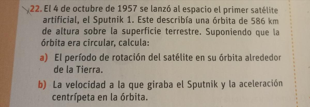 4π2/T2=GM·r3 siendo r=R+h=6370+586 siendo 6370 el radio de la Tierra