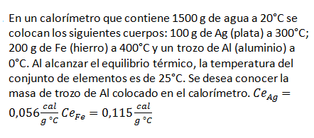 luego, buscas en tablas el valor del calor específico del aluminio ( CAl = 0,215 cal/(°C*g) ), reemplazas en la última ecuación, y queda: