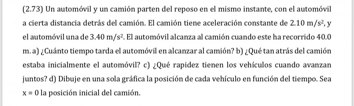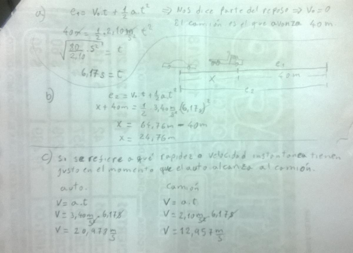 luego, reemplazas el primero de estos dos valores remarcados en las ecuaciones de posición y de velocidad de ambos móviles, resuelves, y queda: