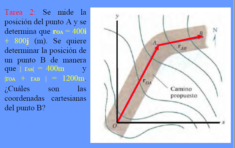 Luego, planteas la expresión del segundo vector, y queda: rAB = < x-400 , y-800 >.