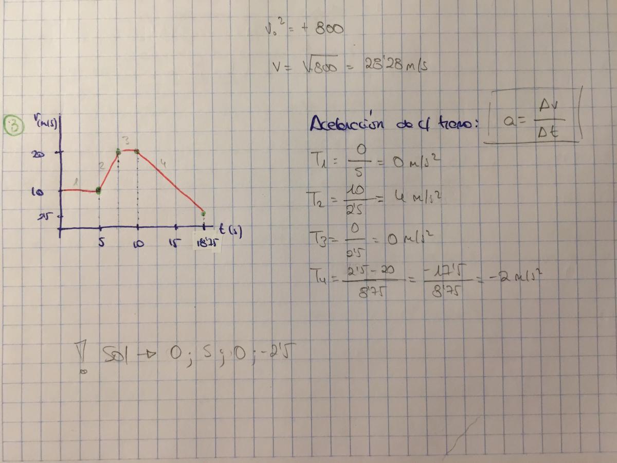 tramo 4: -2 m/s^2 (la solución correcta según el examen es -2,5 m/s^2)