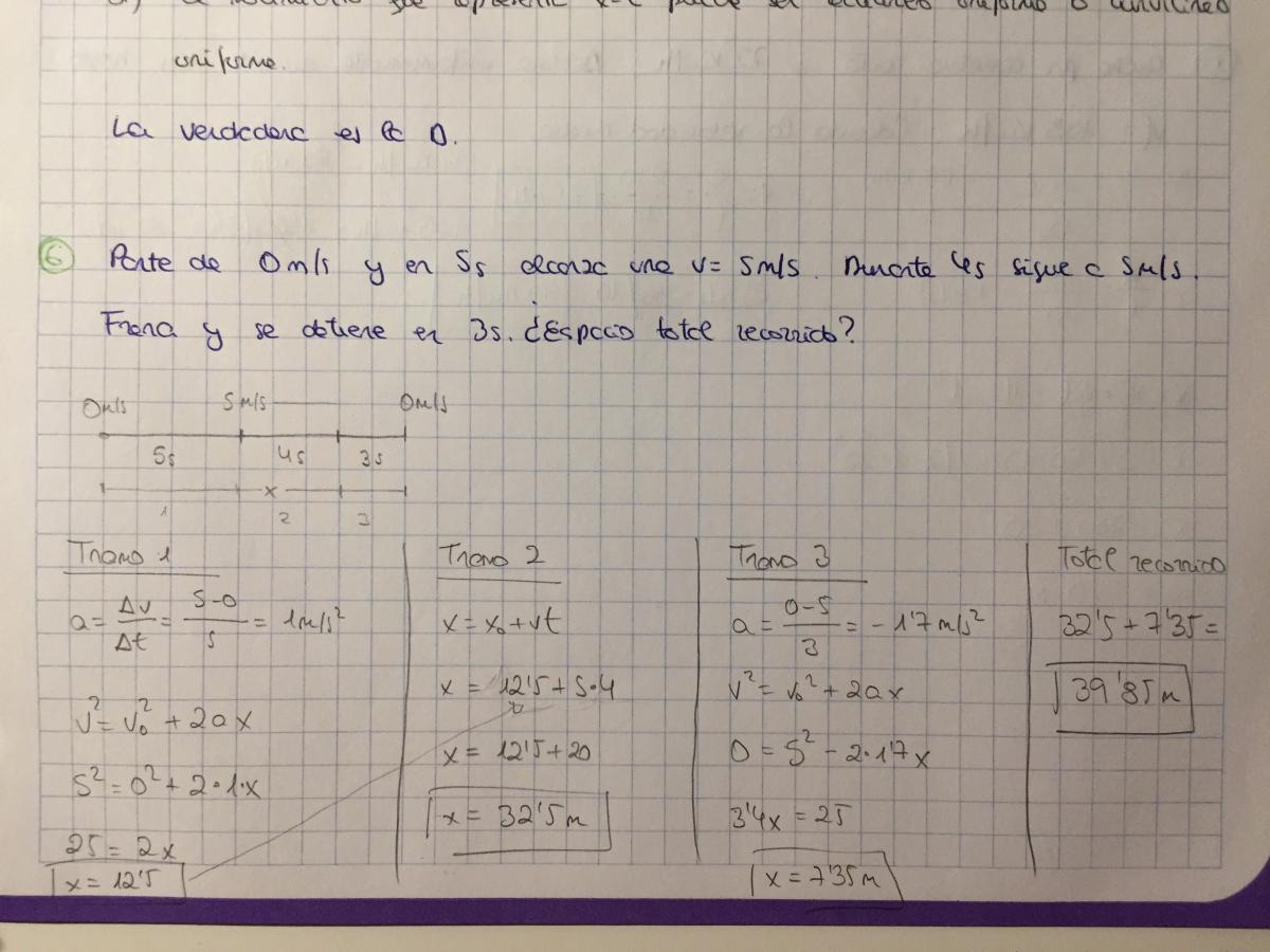 En el ejercicio 6, la solución que se da como buena es 52,8 m, pero a mí me da 39,85 m, y lo he hecho tres veces. No detecto mi error tampoco.