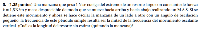 Planteas la expresión de la frecuencia de oscilación en función de la longitud del resorte (observa que es la suma de su longitud natural: L0 más el estiramiento ΔL):