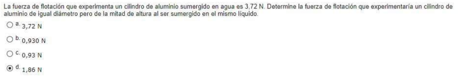 y observa que en el primer miembro tienes la expresión del módulo del peso del segundo cilindro, y como éste valor es igual al módulo de la fuerza de flotación según muestra la condición de equilibrio, puedes concluir que el módulo de la fuerza de flotación para el segundo cilindro es: