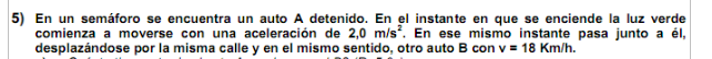 Tengo que calcular el tiempo que tarda el auto A en alcanzar al B y a que distancia del semáforo se encuentran. Ayuda!!!