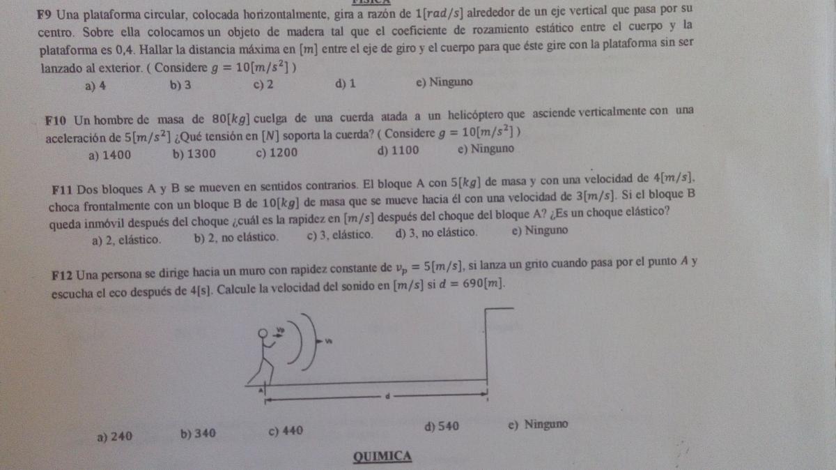 Momento lineal. ChoquesEn cuanto al ejercicio 9 debes plantear la ley de Newton recordando que tienes una fuerza centripeta