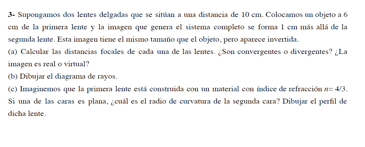 Los resultados que me dan son: s2=-2cm; s´1=12 cm; mt=-1; m2=1/2; m1=-2; f1=4 cm; f2=2cm.