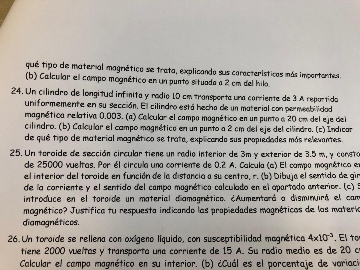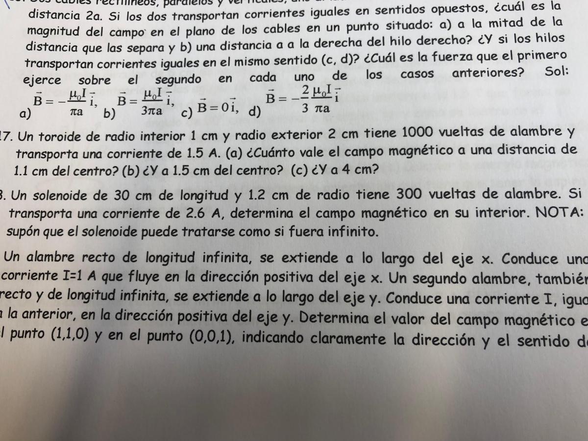 Hola, tengo una duda con el ejercicio 18. Si aplico la fórmula del solenoide no entiendo el dato que me dan 1.2 cm de radio ya que tambien me dan la longitud. Alguna idea de cómo hacerlo ? Gracias.![]()