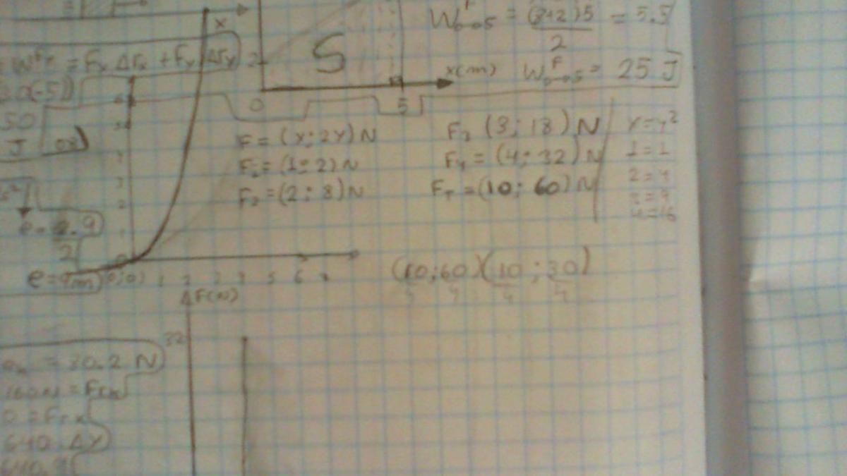 que depende de la posición del anillo según la expresión F=(x; 2y)N(newtons) desde x=0m hasta x=4m.