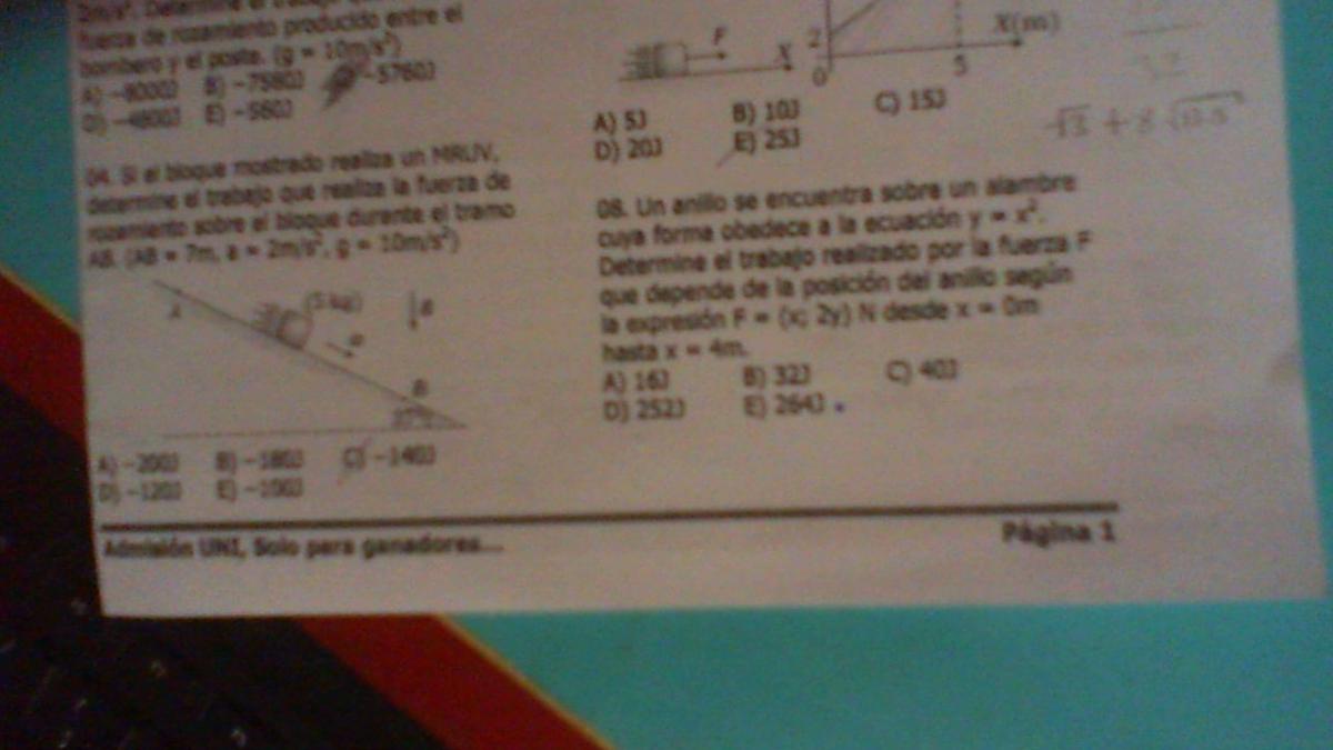 Un anillo se encuentra sobre un alambre cuya forma obedece a la ecuación y=x2. Determine el trabajo realizado por la fuerza F