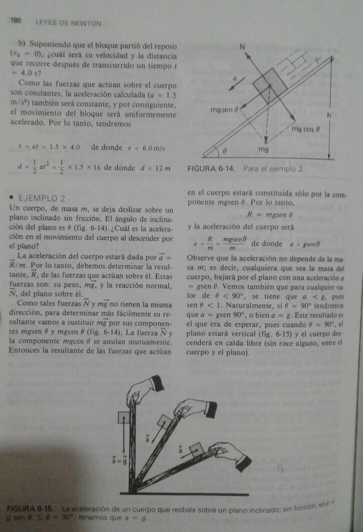 el dibujo del ejemplo 2 es perfecto, sólo le falta la fuerza de rozamiento si la hubiere en sentido contrario a la componente x del peso , que en el dibujo es mgsin*.