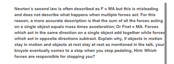 1) Casi siempre hay una fuerza desequilibrada actuando sobre la bicicleta. Tales fuerzas incluyen la fricción.
