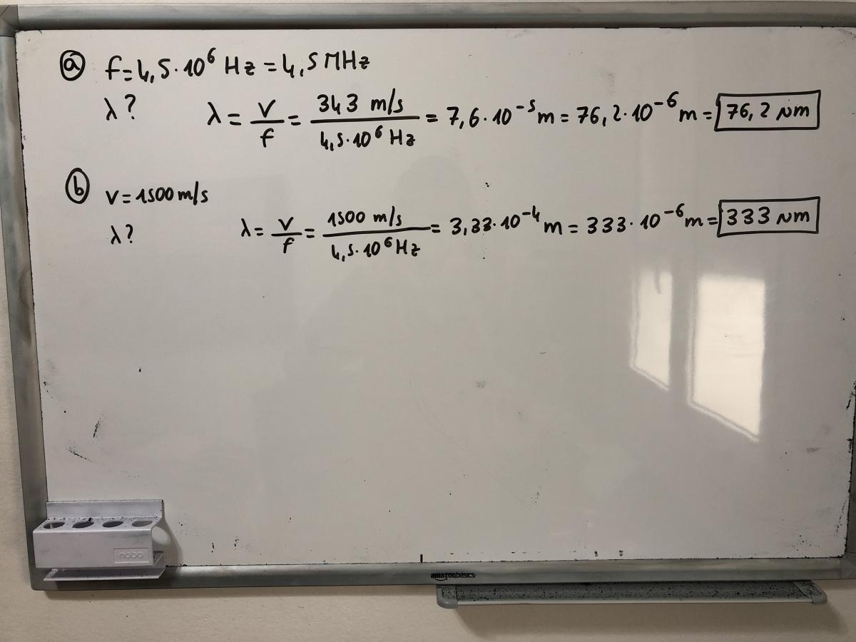 b) si la rapidez del sonido en el tejido humano es 1500 m/s, ¿cuál es la longitud de onda de esta onda en el tejido?