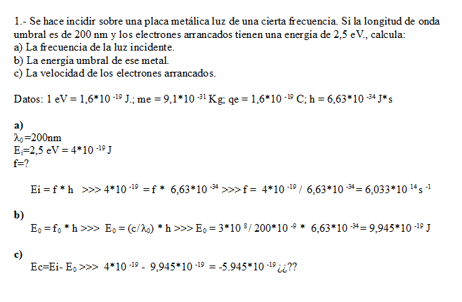 Yo de nuevo, estaba haciendo un ejercicio de Física Moderna y no sé si habré tomando algún dato erróneo, pero la energía cinética me queda negativa, por eso no seguí resolviendo si alguien me dice en qué me he equivocado se lo agradecería.