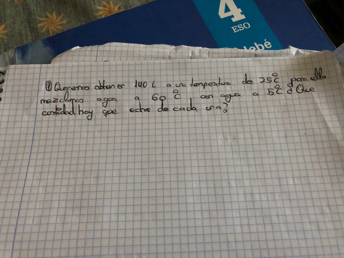 Luego, tienes las temperaturas iniciales de las masas de agua: t1i = 60°C y t2i = 5 °C.