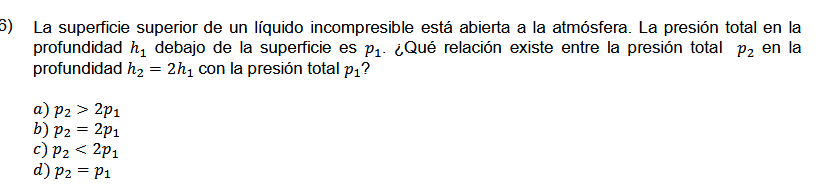 Hola Ale ....Te pide relacionar presiones a diferentes profundidades h1 y h2 ...y el ejercicio te da una relación de que la h2 es el doble de h1