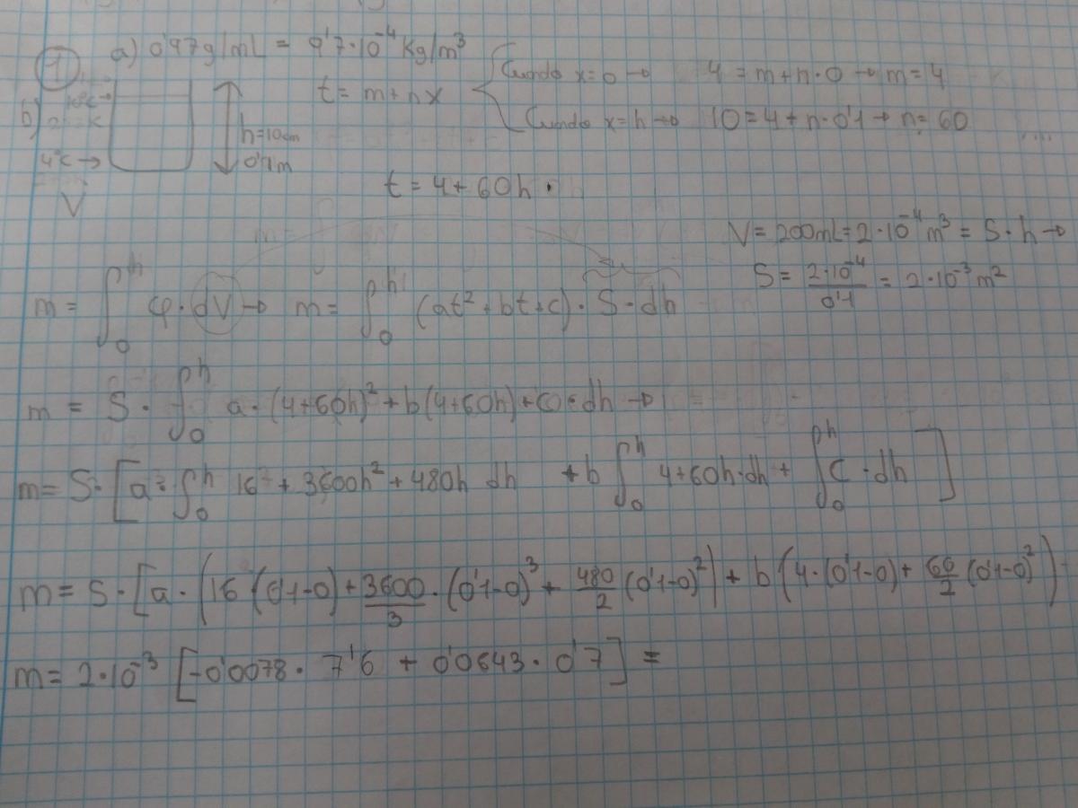 mL, si la temperatura del agua aumenta linealmente con la altura x, entre 4 y 10 oC: t = m +