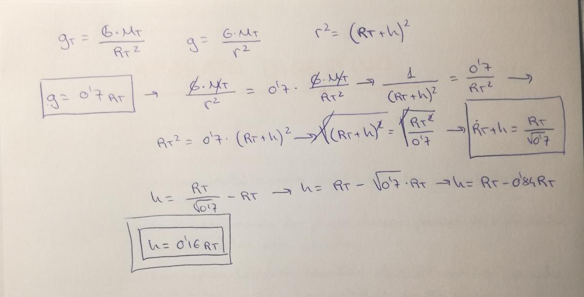 A qué altura sobre la superficie terrestre tendríamos que elevarnos para que nuestro peso se redujera un 30%. Expresa dicha altura en función del radio terrestre. Estaría correcto?