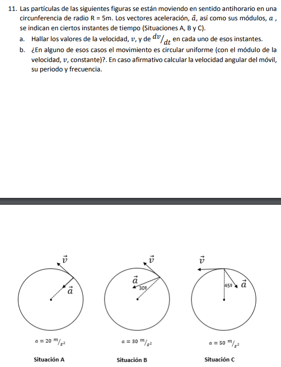 Observa que la aceleración tiene componente radial (centrípeta), y que no tiene componente tangencial,