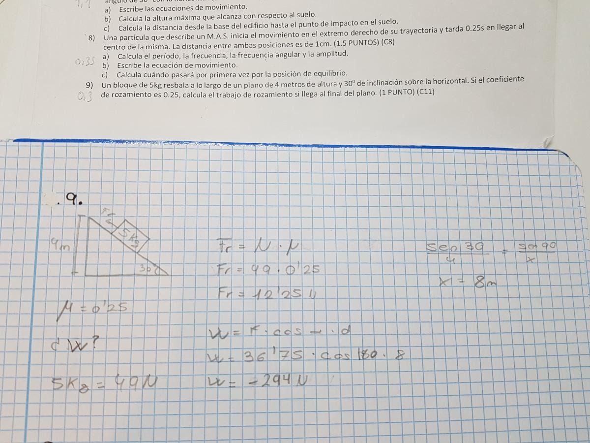 -sustituimos en la formula de trabajo, donde nos queda que: W=-(coeficiente de rozamiento)*m*g*cos(angulo) *deslazamiento