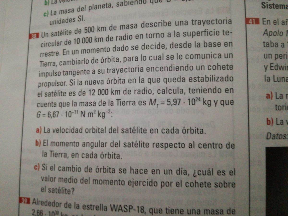 Buenas. Estoy preparándome para la recuperación de física de campos. Estoy practicando con ejercicios de Selectividad de otros años, y este del campo gravitatorio no sabría como afrontarlo. Alguien me puede ayudar o dar una pista para saber cómo se resuelve? Gracias de antemano.