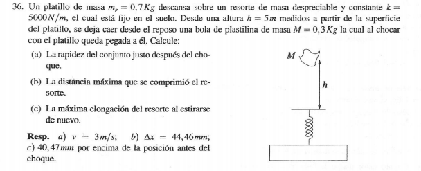 1.- dejas caer un objeto con altura h, en una plataforma con masa encima de un muelle
