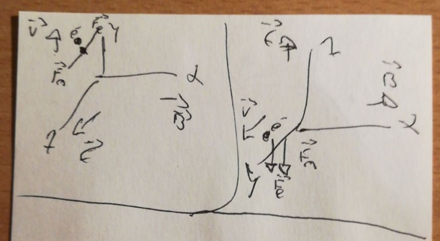 Me explico. Tengo un ejercicio que dice lo siguiente: Un electrón se mueve por la parte positiva del eje Y. En el X hay un B=2i T y en el Z hay un E=3k N/C (todo en la dirección positiva de sus respectivos ejes). Luego el ejercicio me pide que halle la velocidad del electrón para que no se desvíe y que haga el diagrama de fuerzas. La velocidad la se hallar sin problemas pero en cuanto al diagrama me entran dudas. Claro está que para que no se desvíe, Fm y Fe tienen que llevar sentidos contrarios, pero esto solo ocurre con ciertas elecciones de ejes y con otras no.