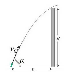 tengo la imagen siguiente, y me piden que calcule Vo para que pase por encima del elemento, sabiendo que H= 15m y L=12m y el ángulo es de 53.13º