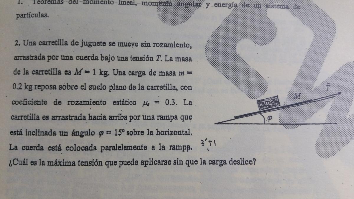Tienes que plantear que la fuerza de rozamiento que se ejercen entre sí la carga (q) y la carretilla (C) es estática y máxima,