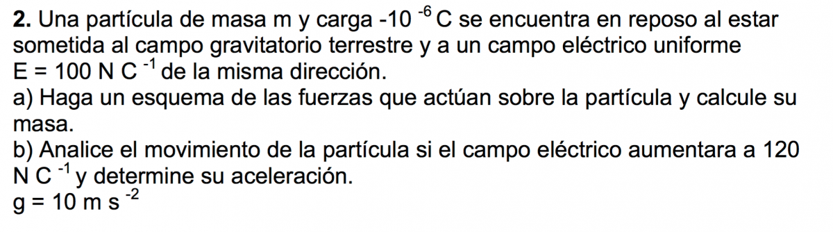Fuerza electrostática: F = q*E = -10-6*(-100) = 10-4 N.