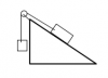 Calcula la aceleración del sistema y la tensión en cada caso. Las masas son 10 kg y 5 kg y el coeficiente de rozamiento 0,2. Los planos inclinados forman triángulos rectángulos con uno de sus ángulos de 30º.