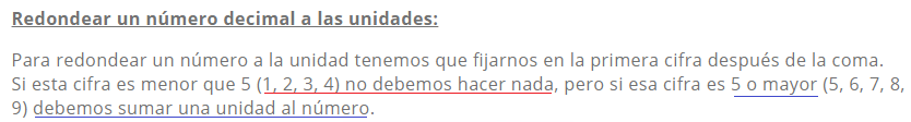Cuando tenes un 0, 1, 2, 3, 4 y 5 después de la coma el número se mantiene y cuando tenes un 5,6, 7, 8, 9 después de la coma el número se puede redondear a 7