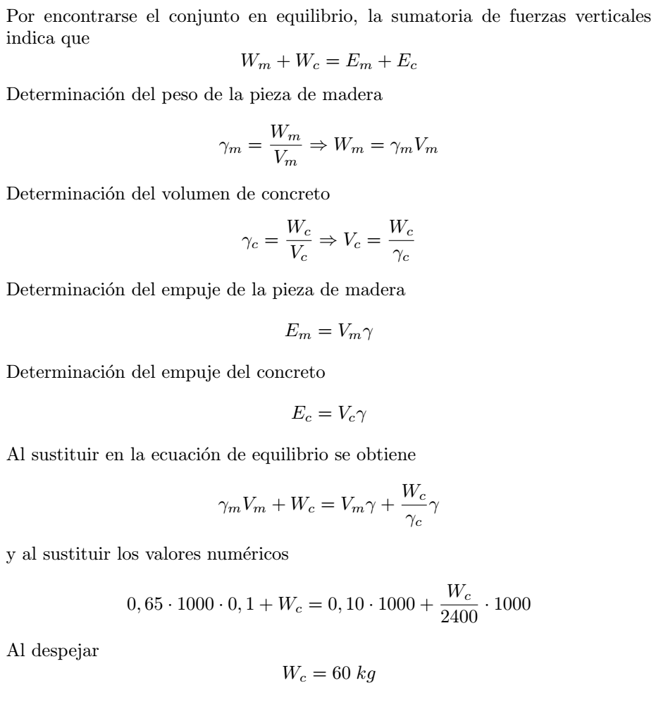 Hola! Disculpen la molestia quería consultar el punto 1 como resolverlo ya que es un ejercicio de Arquímedes pero se resuelve mediante dinámica, la respuesta final es 60 kg de concreto.