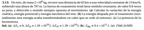 luego plantea para el trabajo realizado por la locomotora (observa que se invierte en variar la energía mecánica del tren y en la energía disipada):