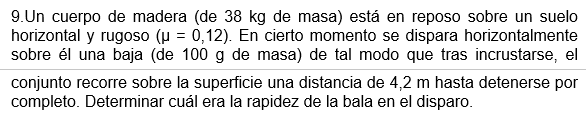 Observa que el conjunto bala-cuerpo se desplaza con rapidez vB.