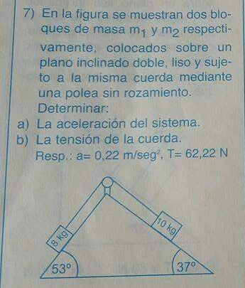 Debes plantear cuáles son las fuerzas que actúan sobre cada bloque.